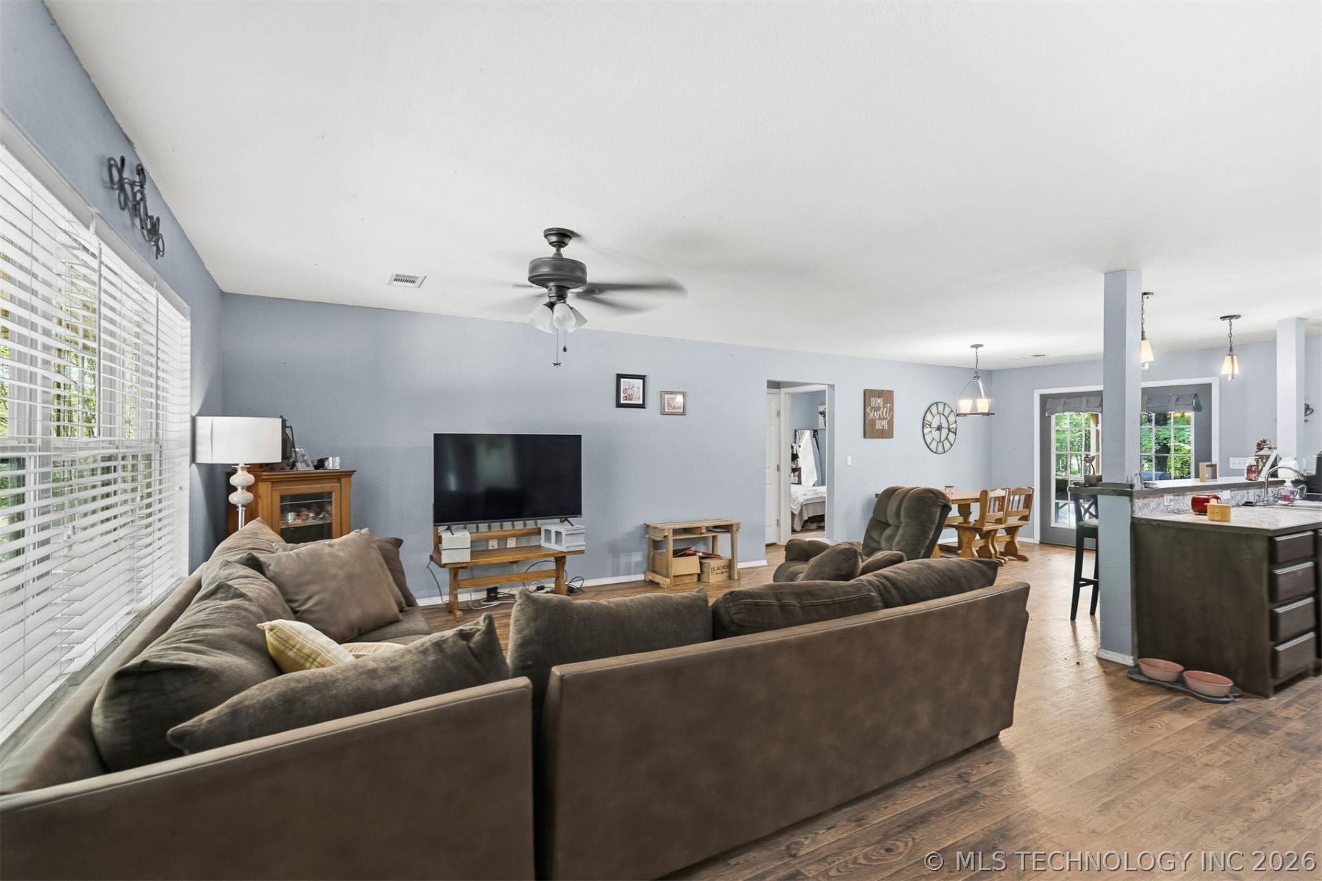Welcome to 1001 Portland Street in Ardmore, Oklahoma. This 3 bedroom 2 bath home in Dickson School District offers an ideal escape on a beautiful lot with a secluded feel. In the kitchen you will find dark custom cabinetry and a large breakfast bar. The open floor concept creates a seamless flow from the heart of the home to the spacious living area, making it perfect for hosting! Step through the kitchen to the large covered back porch- your new headquarters for summer BBQs and quiet morning coffee while tucked away behind the foliage. This property is complete with a water well and aerobic system. Looking for a piece of the country? Check out what all this home has to offer!
