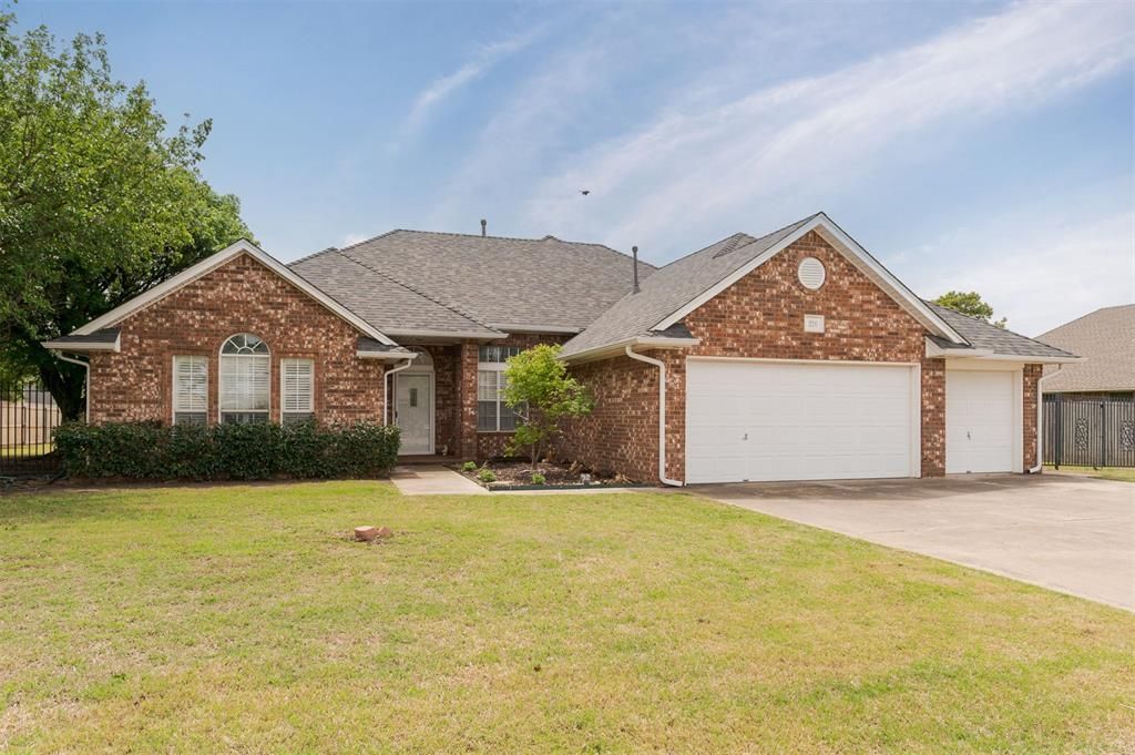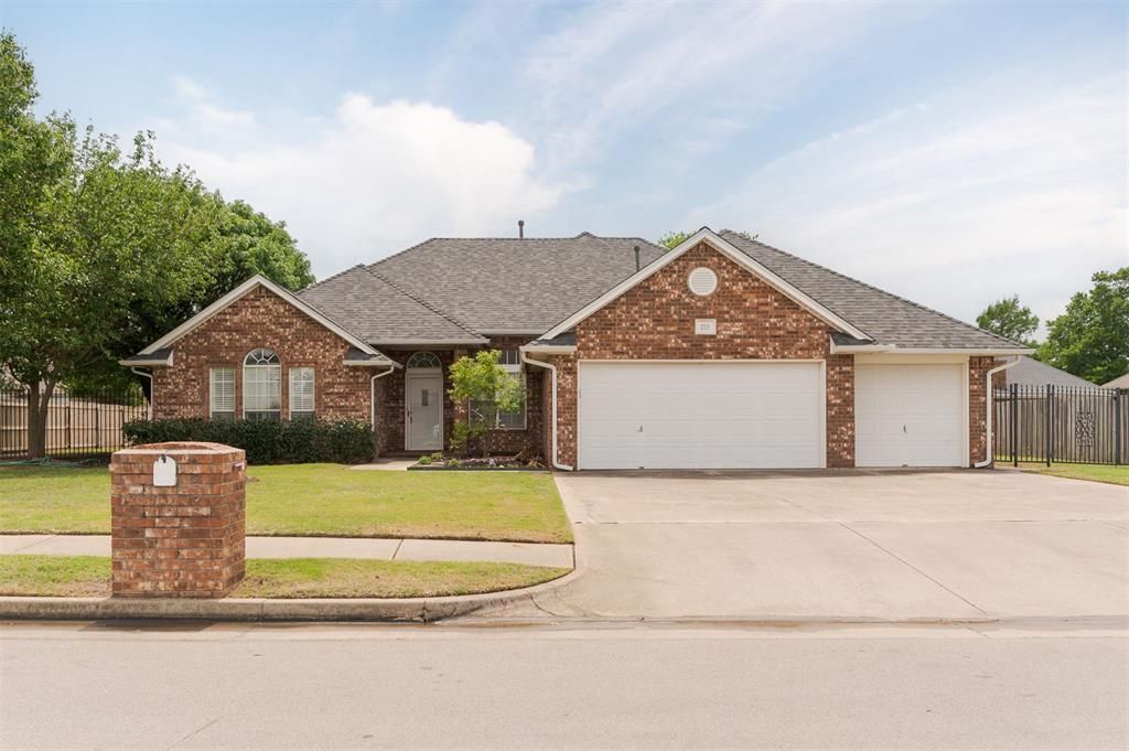 Tucked in a quiet, established neighborhood in a prime location, this beautifully refreshed home blends comfort, character, and standout outdoor living.The exterior is welcoming and features a manicured yard plus three-car garage. Inside, fresh paint, new carpet, and updated lighting create a clean, move-in-ready feel. The main living area features hardwood floors, a gas fireplace with built-ins, and abundant natural light through plantation shutters, with an easy flow into both the formal dining and breakfast nook.The home's layout offers flexibility and privacy, including a vaulted secondary bedroom ideal for a home office and a spacious primary suite overlooking the backyard. The primary bath includes dual vanities, a whirlpool tub, separate shower, and a large wraparound walk-in closet.Out back is where this home truly shines. An in-ground pool with water slide, a covered patio that spans the length of the home, pool house with plenty of storage and potential to add an outdoor bathroom, storage shed, and still plenty of yard space to enjoy, plus a storm shelter just steps outside the back door.A home that feels thoughtfully updated, well cared for, and just a little more special than the rest.